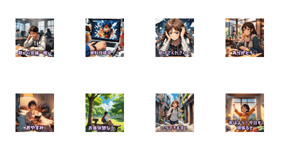 I created stamps for daily greetings and expressing feelings. These cute and fun stamps make it easy to share emotions in everyday chats!