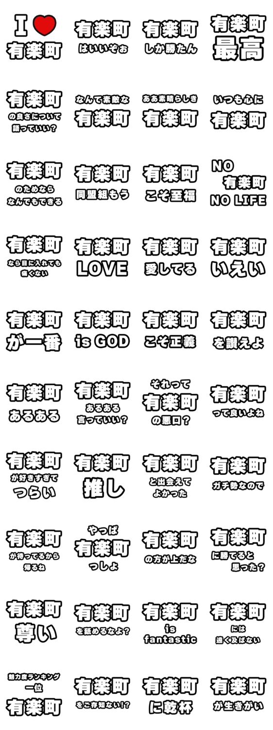 I LOVE 有楽町! 有楽町の愛なら誰にも負けないあなたへ送るシンプルなスタンプ。 ネタ/山手線/京浜東北線/有楽町線/ラブ/シュール/おもしろ/地名/地元愛/電車