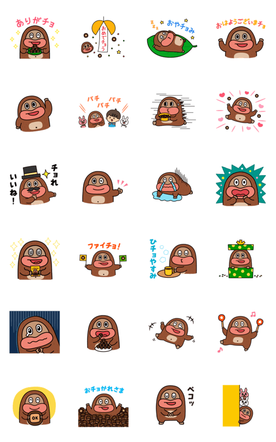 | スタンプ説明 | 毎日をチョっと明るくする 【 サク山チョコ次郎 】の動くオリジナルスタンプです。チョってもかわいい |