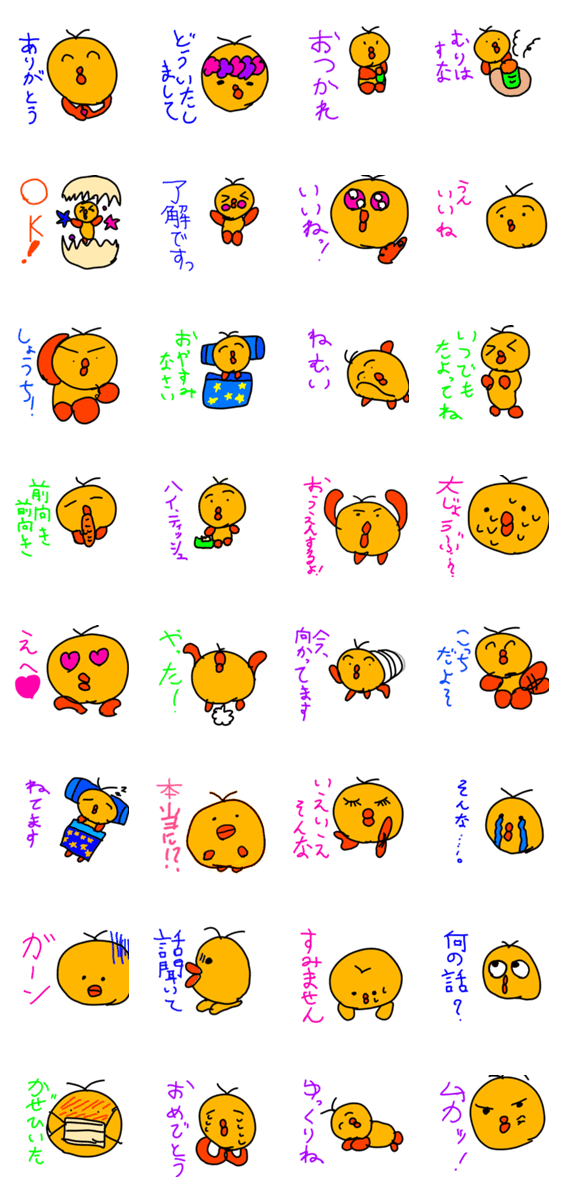 子どもが書いたかわいいあげどりたちがきみに幸せを届けるスタンプ!家族友達はもちろん敬語ありで仕事にも使えるよ!春夏秋冬日常で使えて便利!子供こどもママ友夫婦