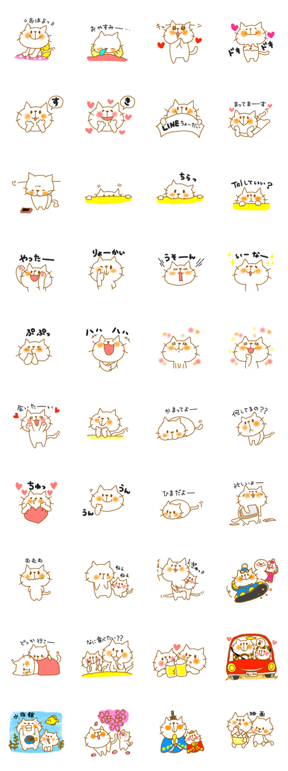 ねこスタンプ第7弾です。恋する気持ちをねこがお手伝いします。