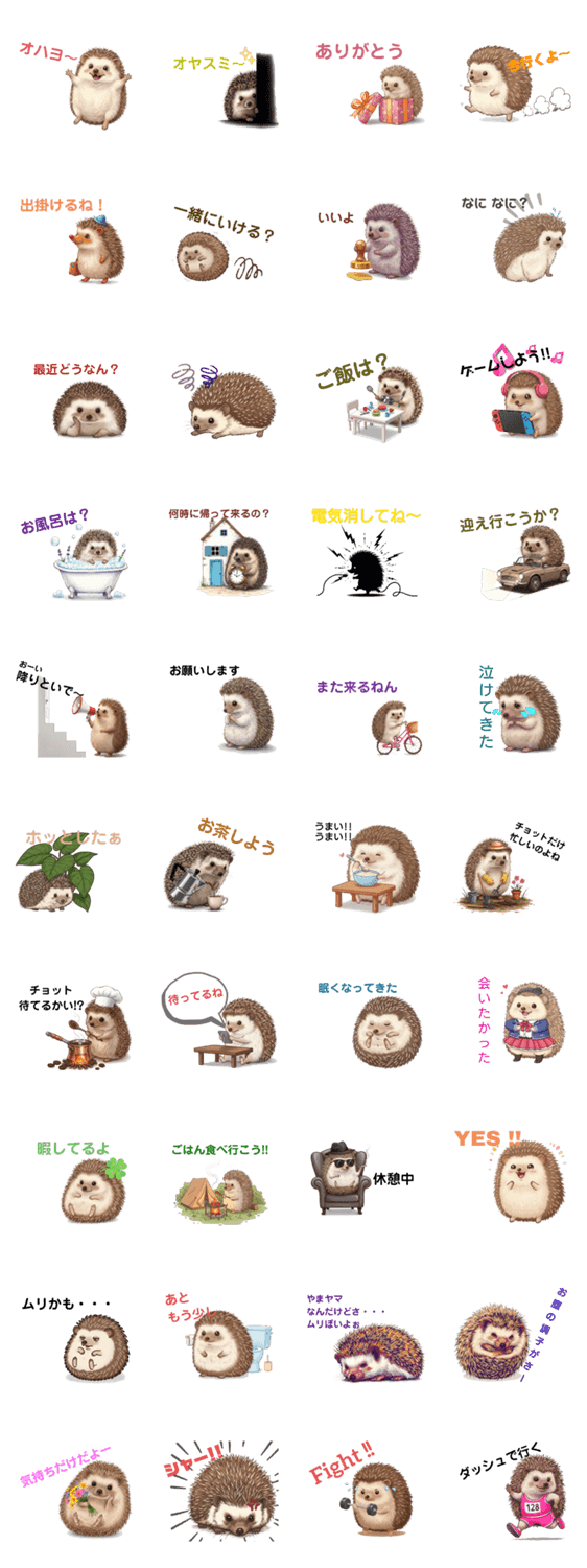 カワイイ癒し系ハリネズミのAIスタンプです。