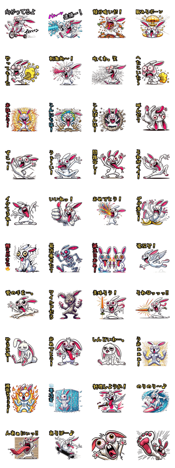 | スタンプ説明 | 癖の強すぎるうさぎが癖になってしまいます❗️コミュニケーションに是非どうぞ‼️ |