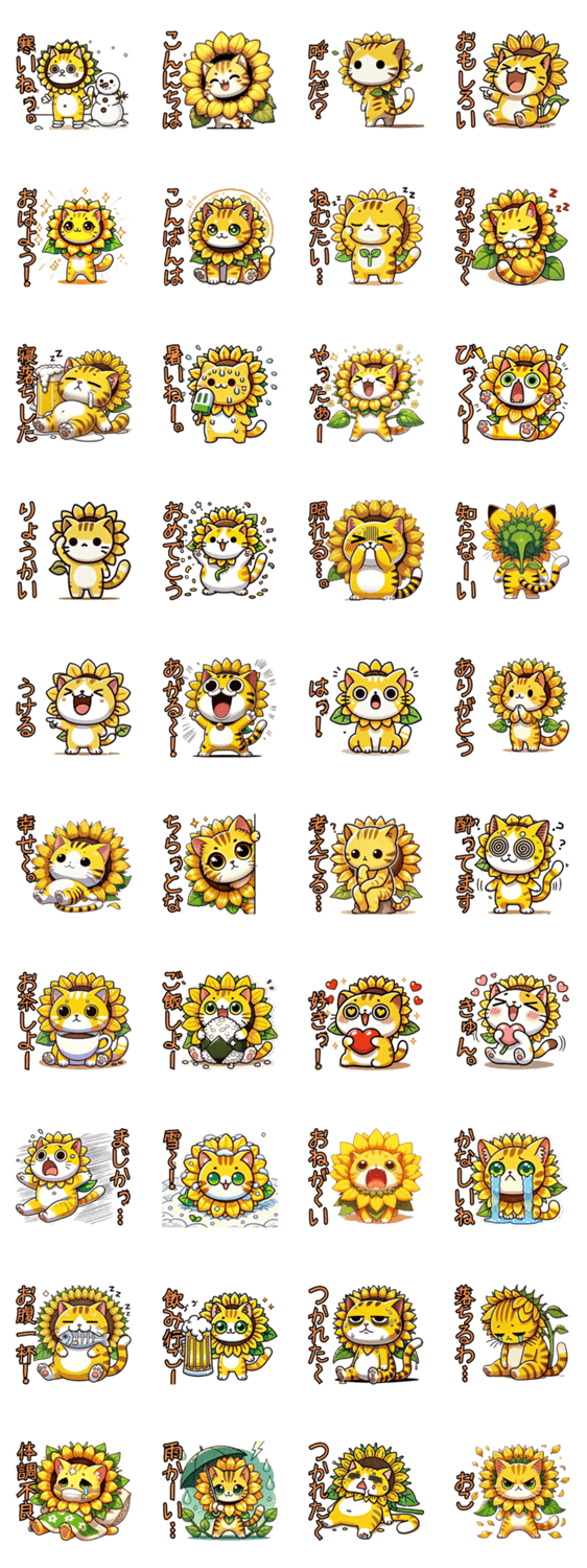 | スタンプ説明 | 花猫シリーズ第一弾の向日葵にゃんが衝撃的なデビュー。花猫シリーズ好評❗️ |