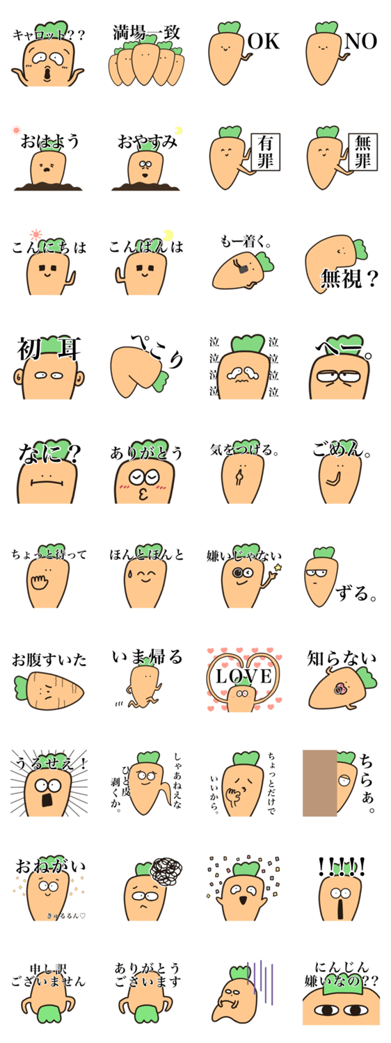 毎日使える素朴な顔から煽り顔の色々な表情の「うざにんじん」/にんじん/煽り/おもしろ/ネタ/あいさつ/うざい/かわいい/シュール/笑える