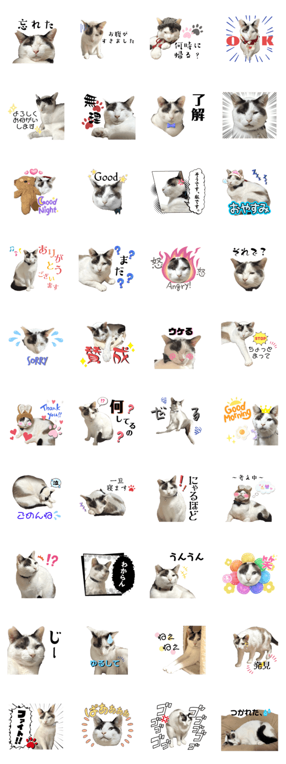 白ネコのあいうえお・・・ってるスタンプ