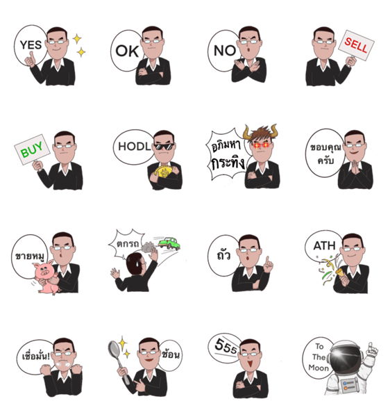 | スタンプ説明 | The fun and excitement of an investor who is thriving in a bullish market |