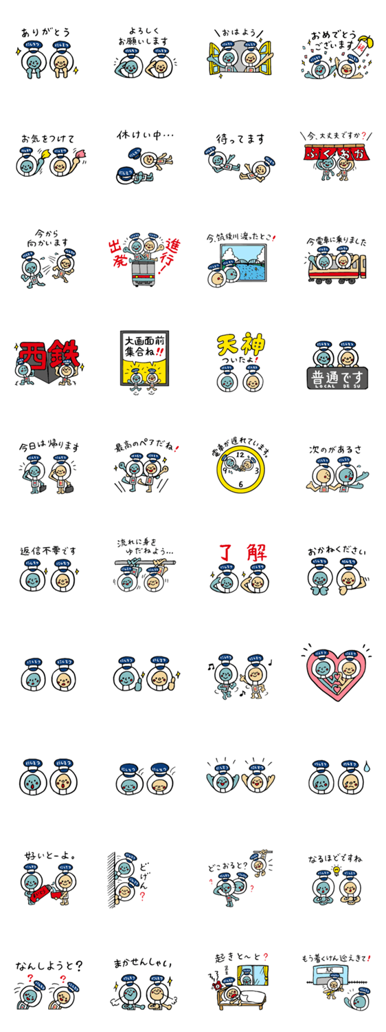 西鉄電車「ガタンコとゴトンコ」のスタンプです。西鉄電車ならではのスタンプもございます!