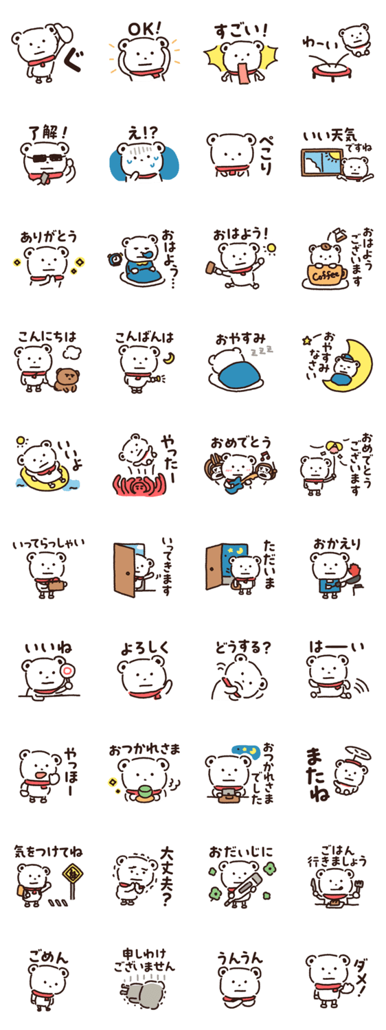 いろんな言い方のあいさつ言葉で、友達・家族・上司にも送りやすい!そっけない表情のシロクマ、そっけなシロクマが毎日のトークをほっこり盛り上げます♪