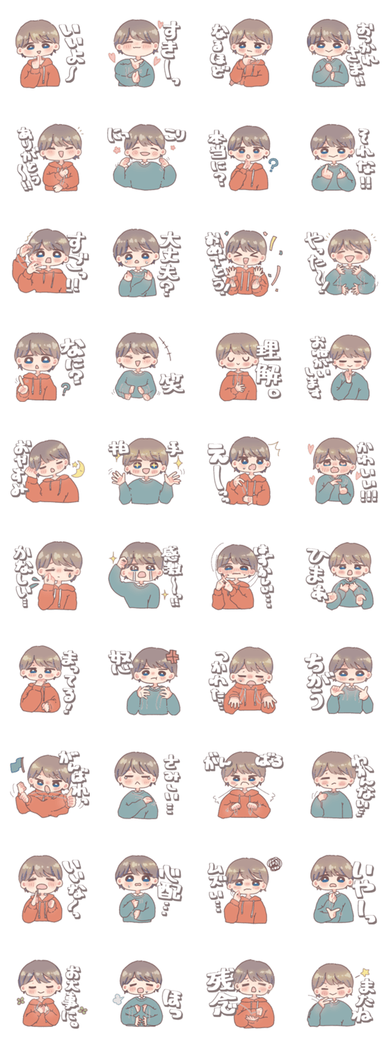 手話を使う、表情豊かでかわいい男の子のスタンプです!日常で使いやすい表現を集めました!たくさん使ってください!サインランゲージ/日本手話/日本語対応手話