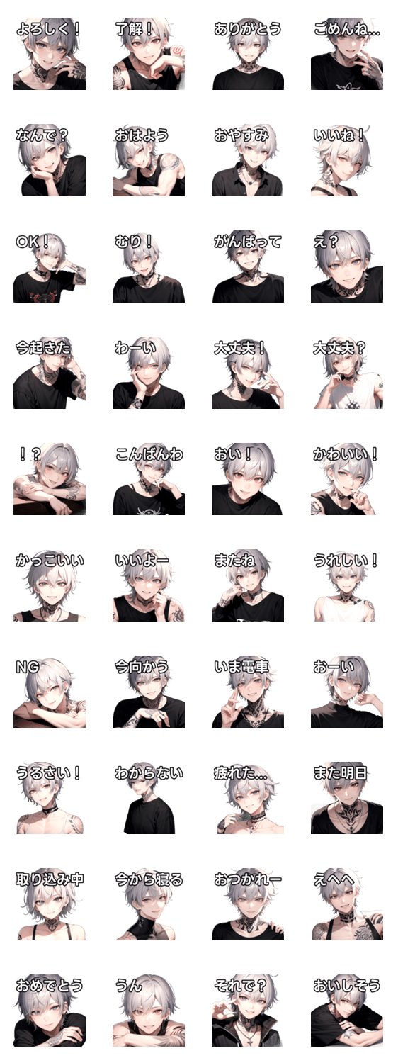 カジュアルな銀髪タトゥー男子15 -LINEスタンプマニア