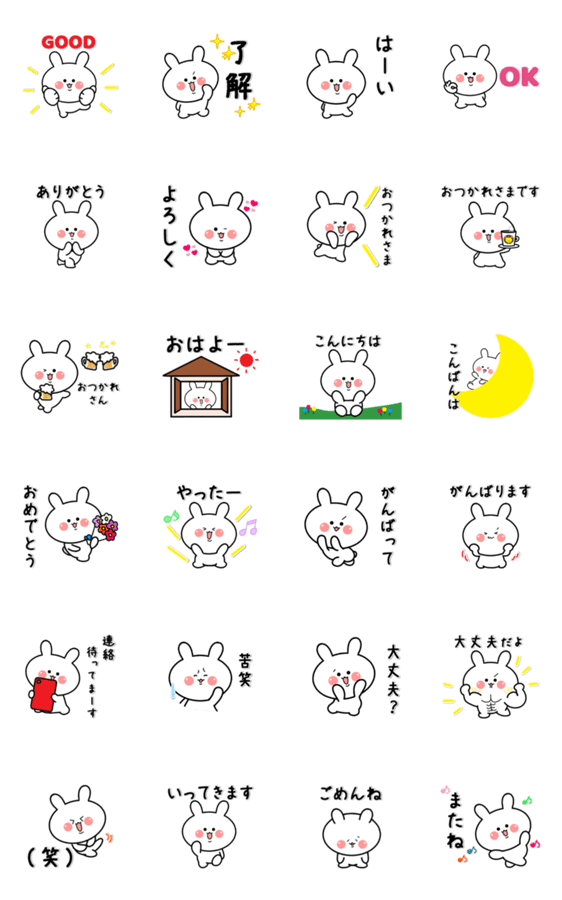 かわいいうさぎさんが動きながら挨拶する便利なスタンプです。Good・了解・はーい・ありがとう・おはよー・等毎日使える挨拶が入ってます。