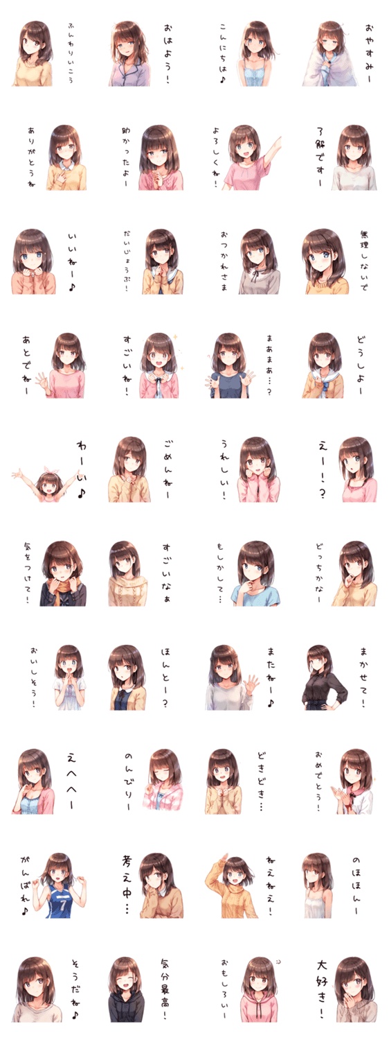 丁寧でふんわりした返事にぴったりのスタンプ集。ビジネスシーンや友人とのやり取り、お礼や共感の表現に使えるイラストです。