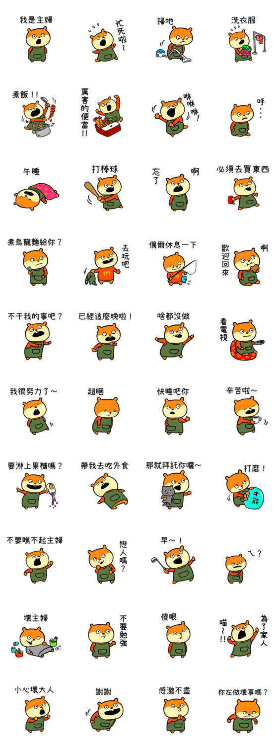 | スタンプ説明 | Housewive have a lot to do! I'm trying my best! |