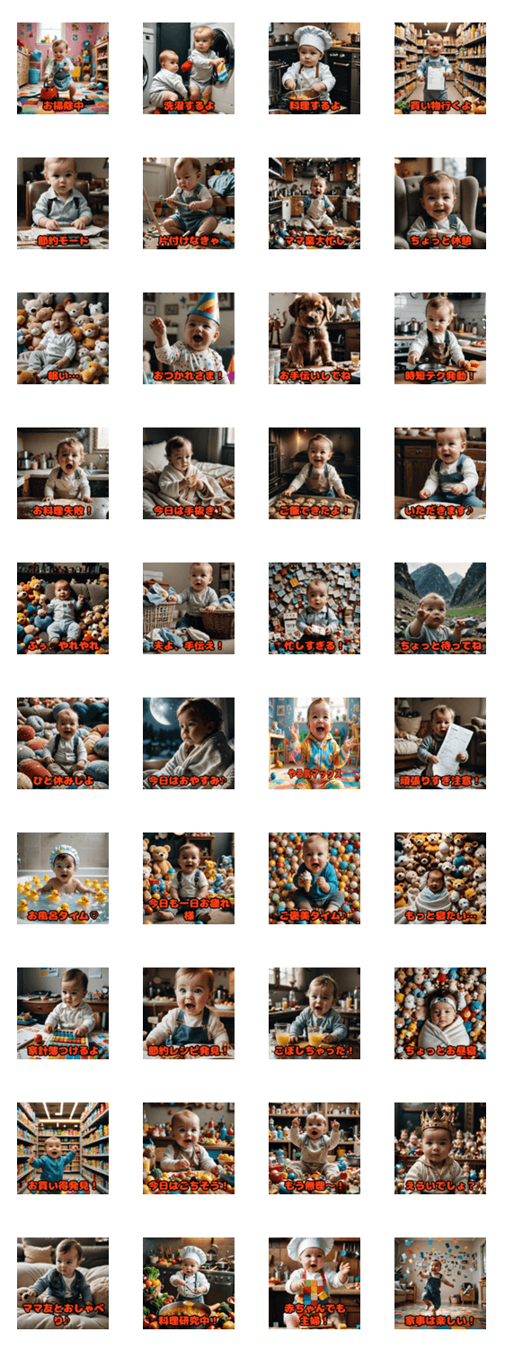赤ちゃんだけど主婦業がんばる!料理、掃除、買い物に大忙しの主婦ベビーがあなたのトークを楽しく彩ります