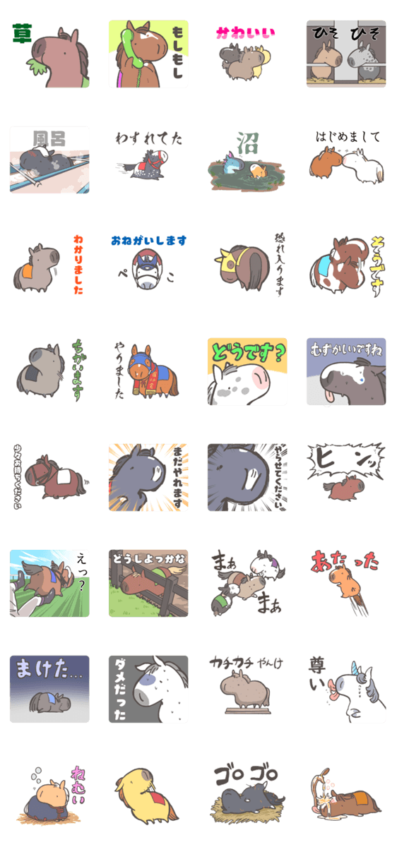 UMAスタンプ第5弾。 もちもちデフォルメされた馬たちです。