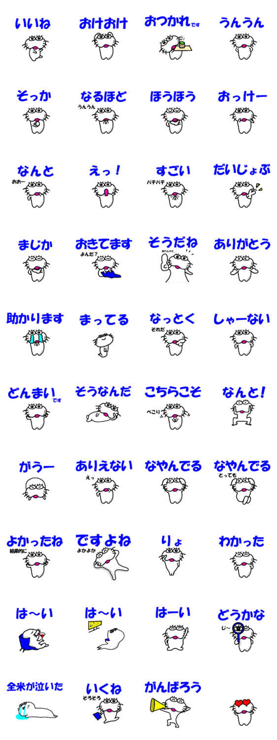 スタンプ説明 しろアザラシが感情を伝える楽しいスタンプです。