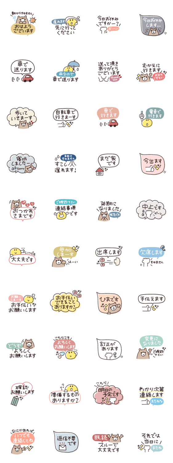 行事、連絡などに1つあると便利なスタンプです。シンプル/かわいい/大人可愛い/くすみ/毎日使える/ふんわり/ゆる/吹き出し/スマイル/くま