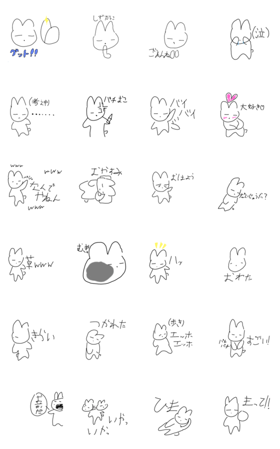 LINEスタンプメーカーでつくったスタンプです。このうさぎは架空のうさぎなので『?う?さ?ぎ?』にしました。良かったら使ってください。