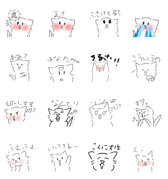 白ネコのあいうえお・・・ってるスタンプ