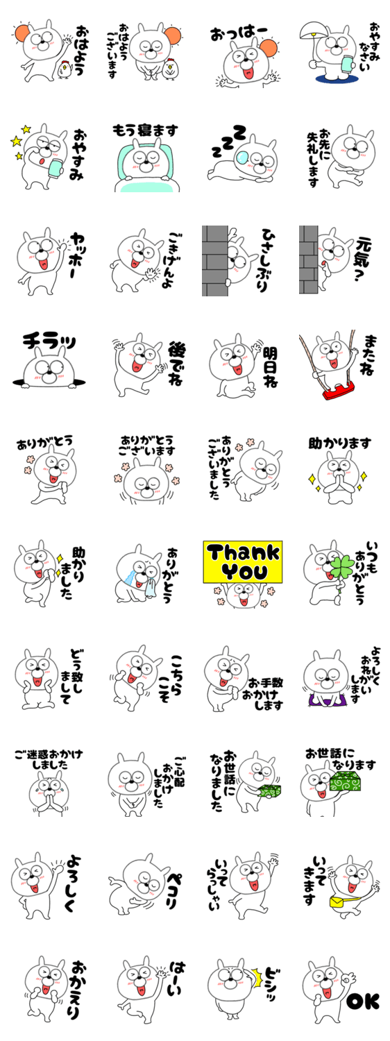毎日使えるあると便利な可愛いウサギの挨拶スタンプです