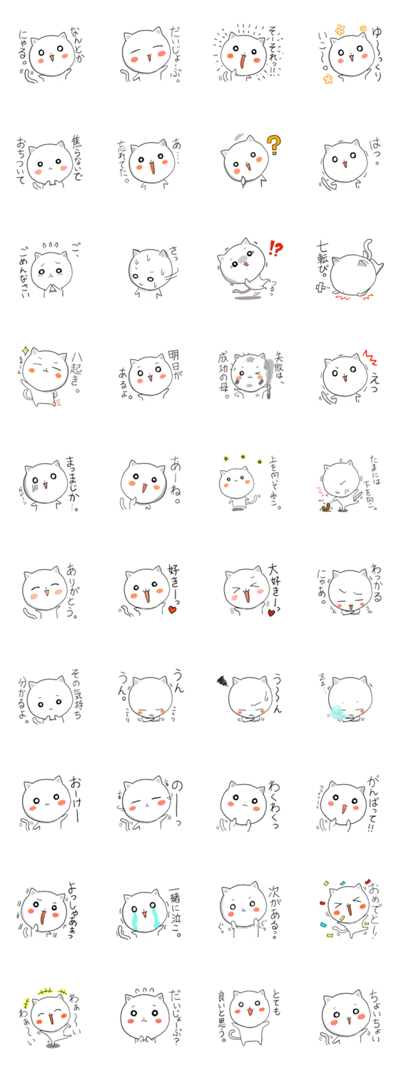 白いねこの可愛い癒し系スタンプです。誰かを励ましたい時などにもきっとお使いいただけます、