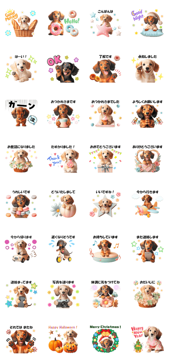 ダックスフンドの毎日使える日常会話&敬語の犬スタンプです。