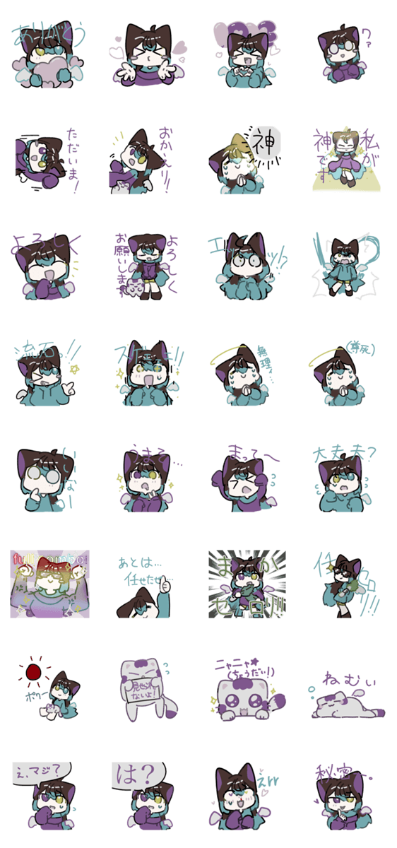 氷の使い魔・ちもまると月のスタンプ第2弾!ちもまる、こだわりの1作。けむりうずもいるよ!