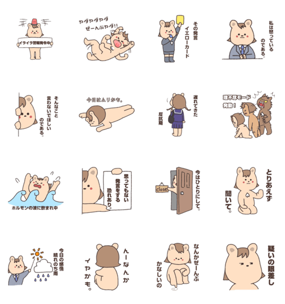 ストレスが溜まって優しくなれないとき、ホルモンバランスで感情が乱されてしまうとき、相手に怒りをぶつけてしまう前にポップなスタンプで気持ちを伝えられます。