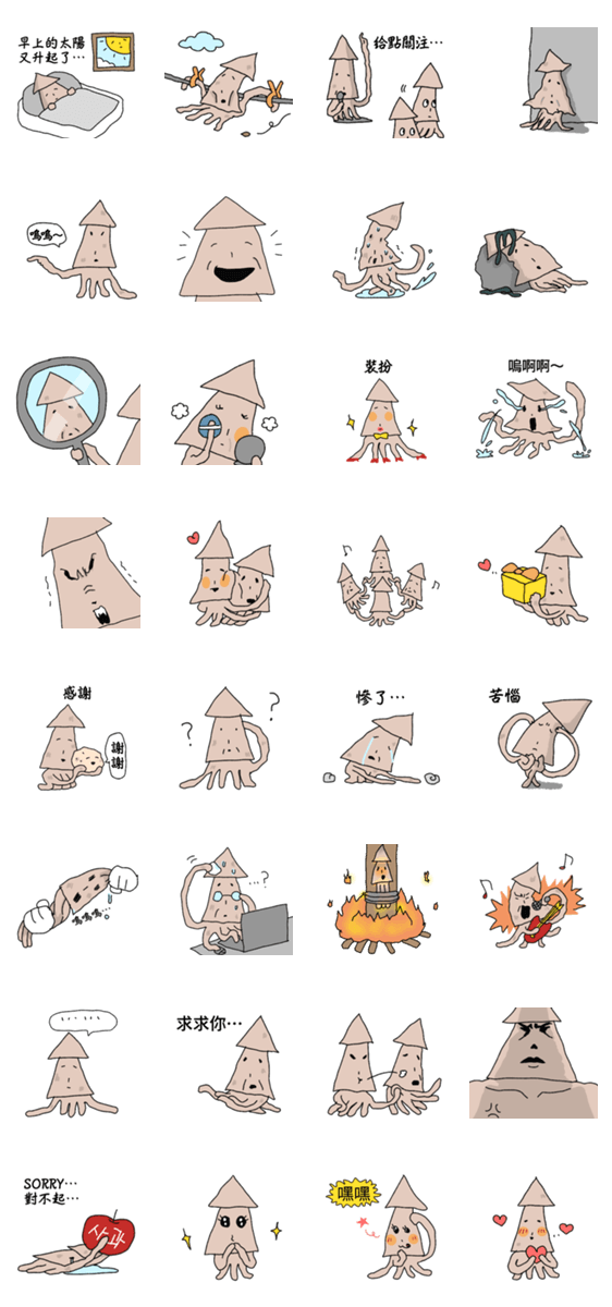 ボロボロなイカ(中国語) -LINEスタンプマニア