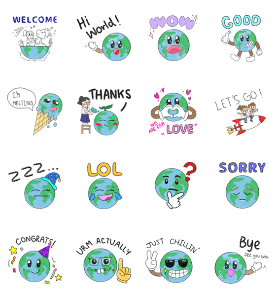 | スタンプ説明 | EPTS PDS Climate Club Official Stickers by drawing competition winner Najarin Na Nan features the cheerful globe Globee. All proceeds go to making a difference! |