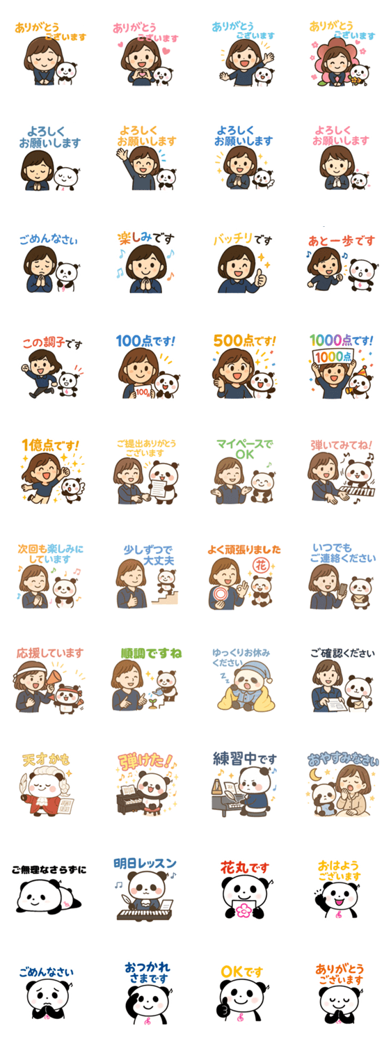 | スタンプ説明 | おんたす楽譜教室のキャラクターが登場!やさしく親しみやすい雰囲気で、音楽のレッスンや日々の学びを応援してくれる癒し系スタンプです。 |