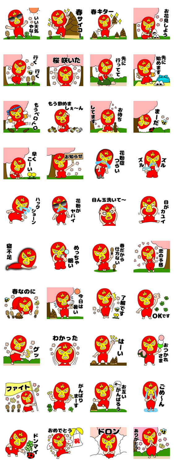毎日使える赤いマスクを被ったレスラーの春を感じるスタンプです