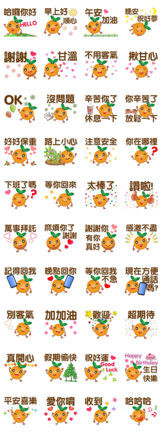 | スタンプ説明 | Cute Oranges - Practical Daily Phrases |