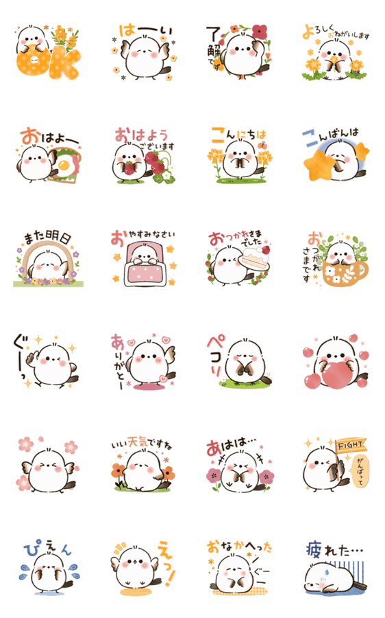 丸くて可愛いシマエナガさんの動くスタンプセットです。