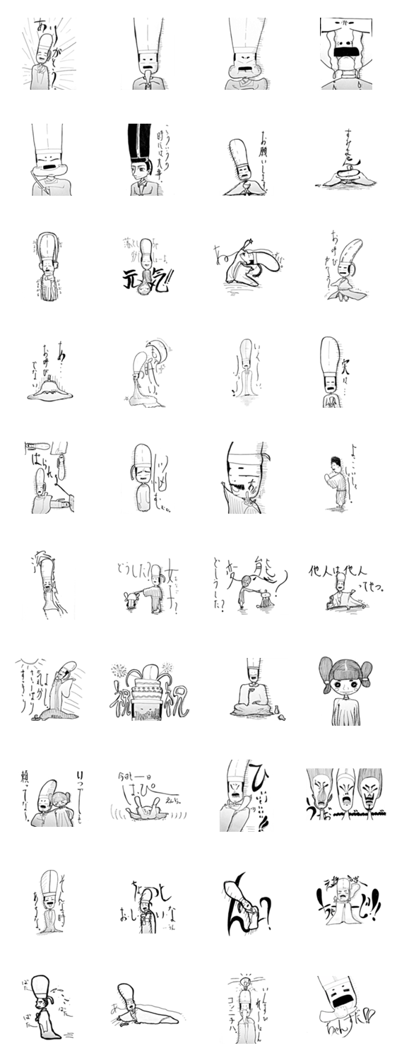 手書き系スタンプ。時にゆるく、優しく、厳しく、激しく。言葉に詰まったらしゃくし君が助けてくれます。