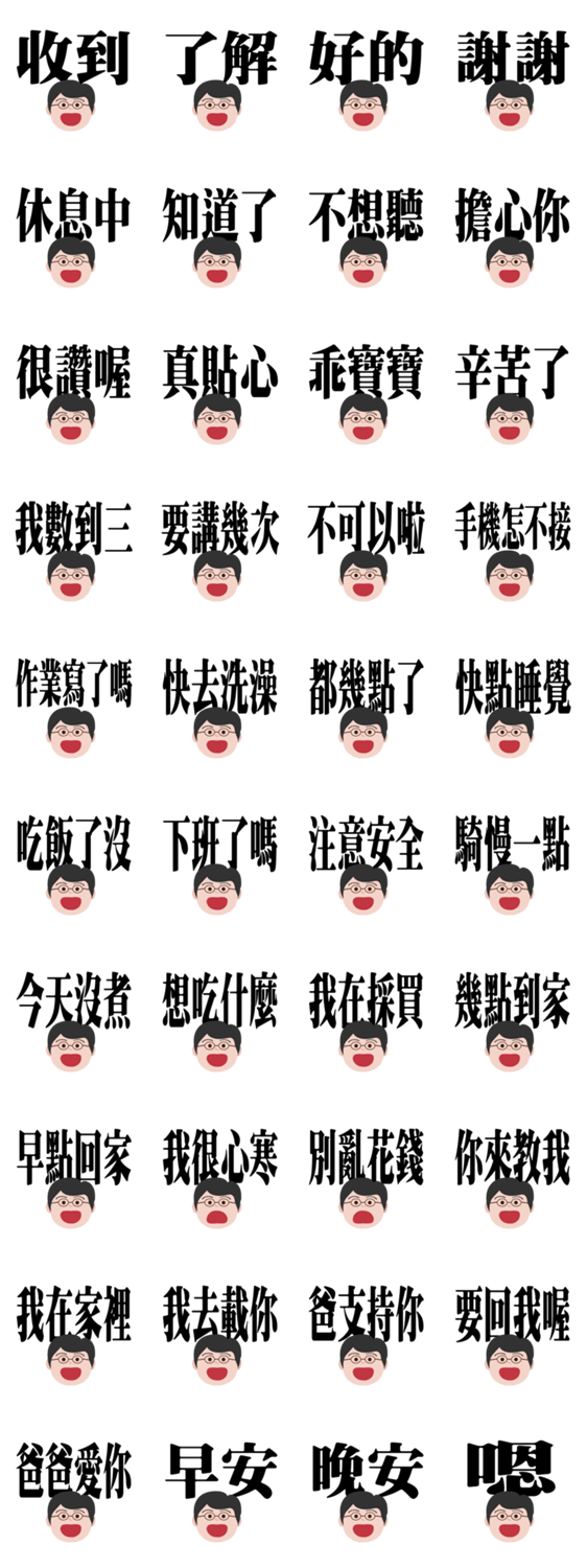 | スタンプ説明 | タイプするのが面倒なお父さんやおじさんへのシンプルで簡潔な返信。 |