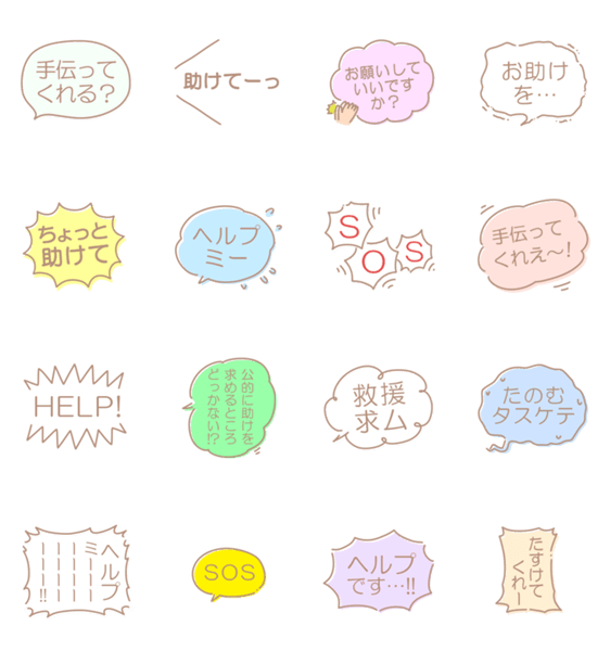 ヘルプミー!助けて~ ワンオペきつ~!寝不足~!失恋~!特売品買い逃した~! とにかく全人類助けを求めているので気楽に送れるかもしれないSOSスタンプ持っとこ!