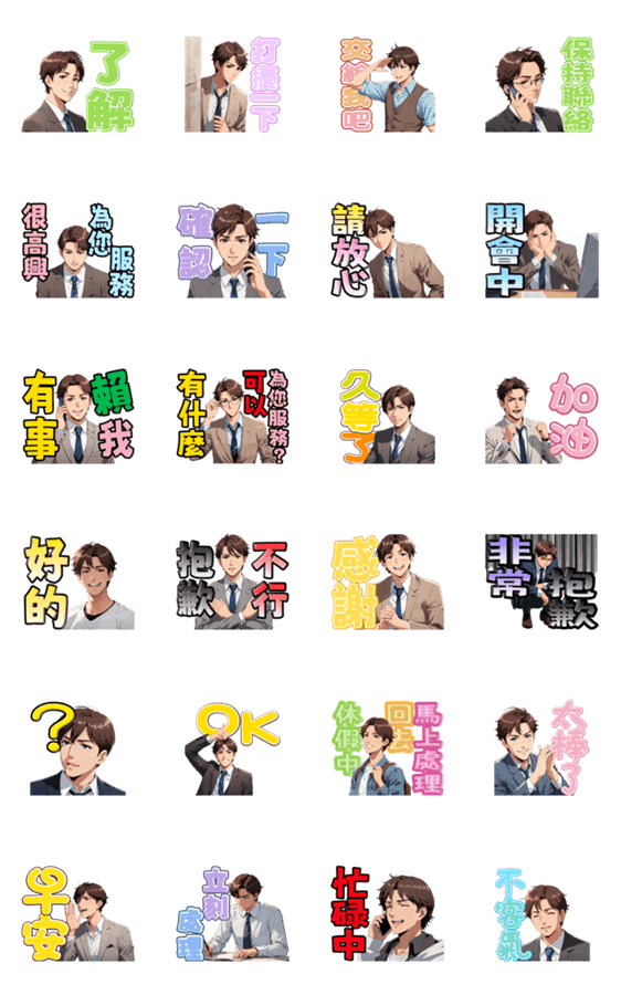 | スタンプ説明 | Vibes of office life, perfect for professionals during meetings, overtime, and everyday chats, adding fun and confidence to work. |