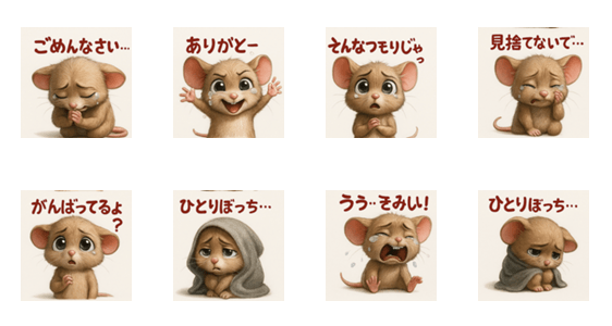 このスタンプは心が温かくなる可愛さ満点の泣いているネズミが登場するスタンプセットです。
