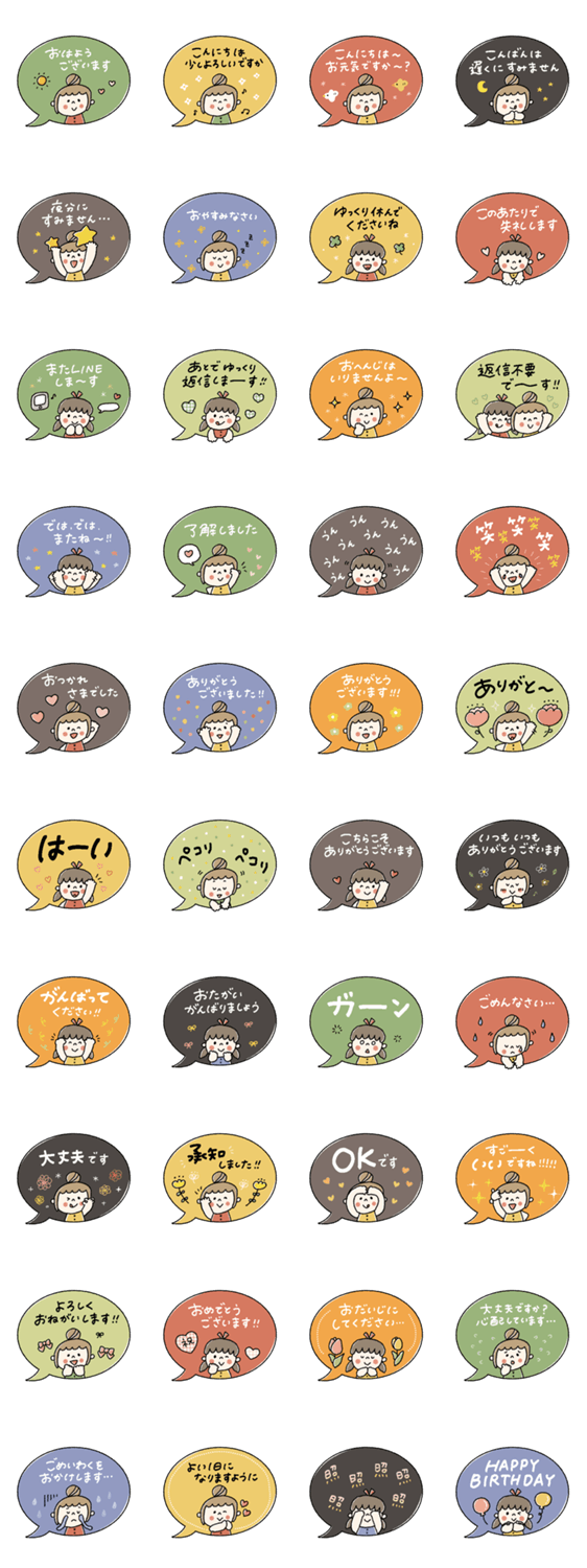 日常/使いやすい/落ち着いた/大人女子/大人可愛い/大人/かわいい/カラフル/スタンプで会話/毎日使える/返信不要/文末/柔らかい雰囲気/トーク終わり/丁寧な返信/応援/文字