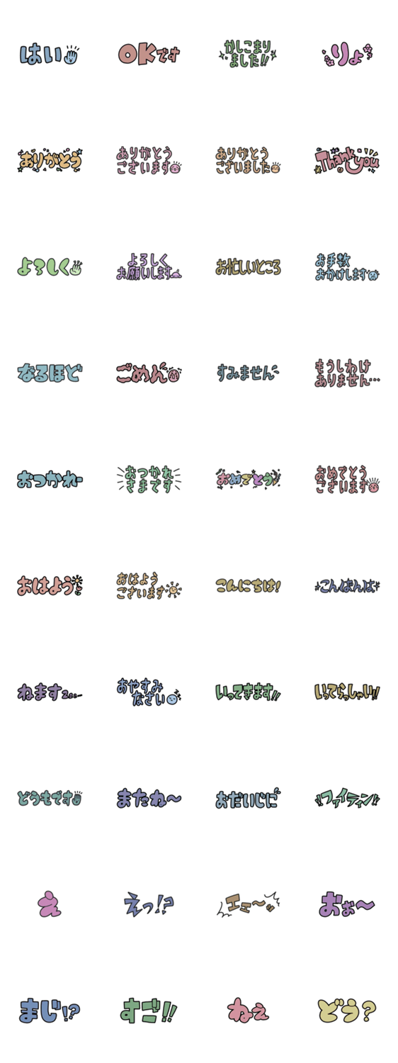 色々な場面で活躍できるスタンプです。高さが低めで省スペースに使えます。 挨拶/敬語/ひとこと/省スペース/文字/文章/シンプル/渋い/シック