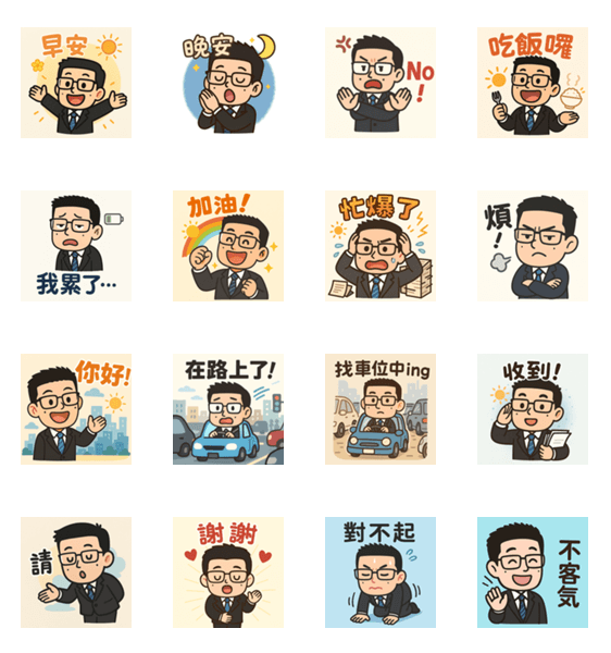 | スタンプ説明 | A cheerful office guy for your daily chats! |