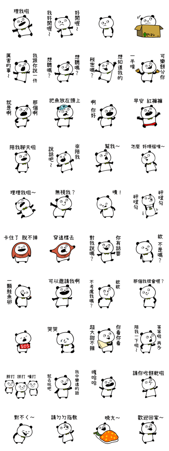 | スタンプ説明 | Meet the attention-seeking panda from team "GOKIGEN PANDA"! Let's think of a way for panda to get your attention. |