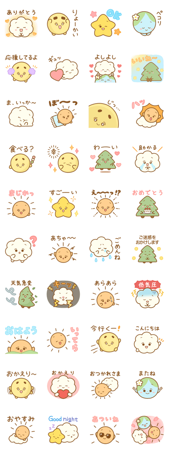 くもと愉快な仲間たちのスタンプです♪ 日常会話/家族/友達/連絡/かわいい/天気/1年中/毎日/大人/気づかい/あいさつ