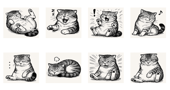| スタンプ説明 | i'm fat cat, Dodo (Manga style) |