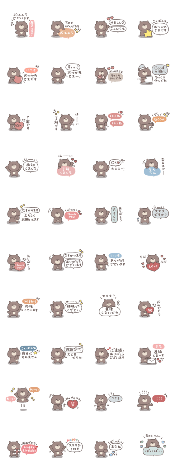 一つあると便利なかわいいくまのスタンプです。 くま/大人可愛い/シンプル/あいさつ/吹き出し/くすみカラー/敬語