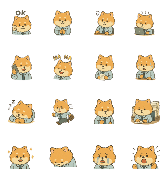 | スタンプ説明 | The life of an orange and white Pomeranian office worker |