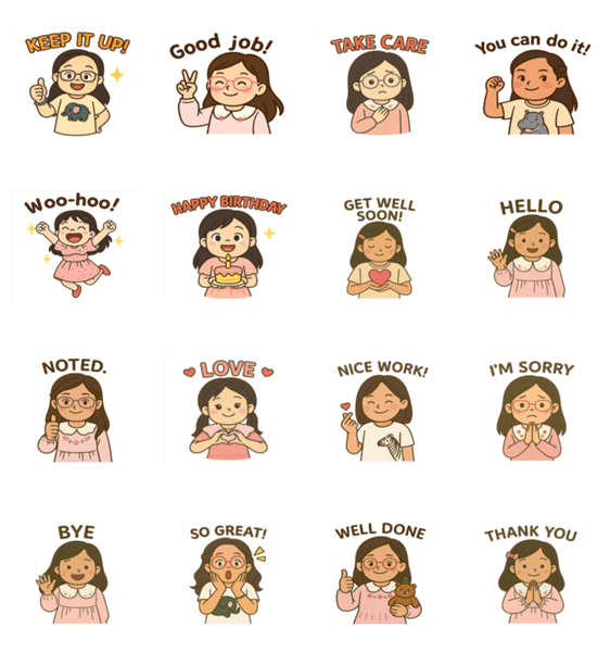 Cute cartoon girls cheer you up with kind words. Perfect for kids to express support, joy, and love every day.