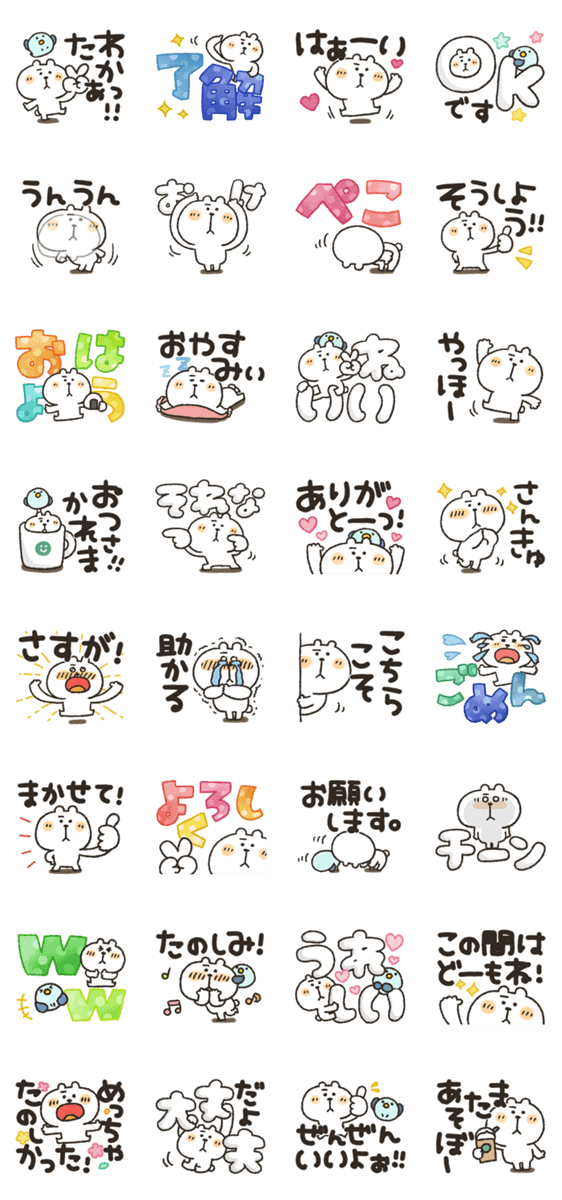 くまぴのスタンプ大きい文字バージョンです。カラフル友達言葉